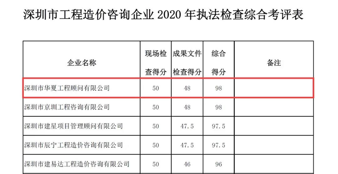 2.外省、市工程造價咨詢企業(yè)深圳分公司2020年執(zhí)法檢查綜合考評表
