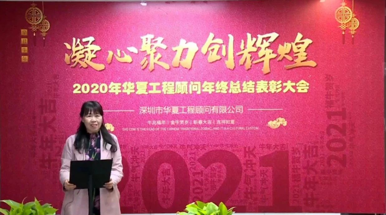 陳總工從計劃完成情況、生產經營情況、存在問題與改進意見等三方面向全體員工宣讀了2020年度工作總結報告。她說:“2020年是不平凡的一年,新冠肺炎疫情席卷全球,華夏工程顧問積極響應政府號召,在做好疫情防控工作的同時,力求經濟復蘇,公司全體員工上下齊心,共克時艱,每個人都付出了辛苦和努力。2020年,華夏每一位員工都了不起!”