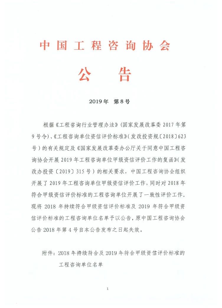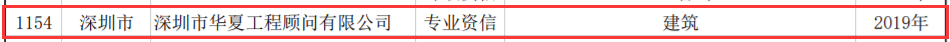 2019年7月30日,中國工程咨詢協會2019年第8號公告,公布了2018年持續符合甲級資信評價標準及2019年符合甲級資信評價標準的工程咨詢單位名單,深圳市華夏工程顧問順利通過評審,取得了工程咨詢建筑專業甲級資信。根據中國工程咨詢協會公布的甲級資信單位名單,深圳市取得甲級資信單位僅有26家。